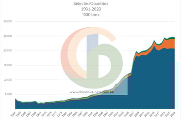 China, India, USA and Egypt are major producers. Whereas India's production is rising, China remains no. 1 with over 20 million tons production in 2023 equal to over 80% of Top 4 producers!